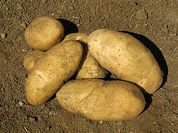 Long, white-skinned potatoes in